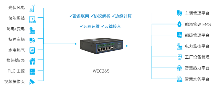 | 示例 | WEC265-LL07-MQTT:支持4G CAT4全網(wǎng)通,通用網(wǎng)關(guān)(支持Modbus/CJ188/PLC等協(xié)議) WEC265-LL02-W-EMS:支持4G CAT1和WIFI,能源網(wǎng)關(guān)(支持IEC104和IEC61850燈協(xié)議) WEC265-NF02-MQTT:支持5GRedCap,通用網(wǎng)關(guān) |