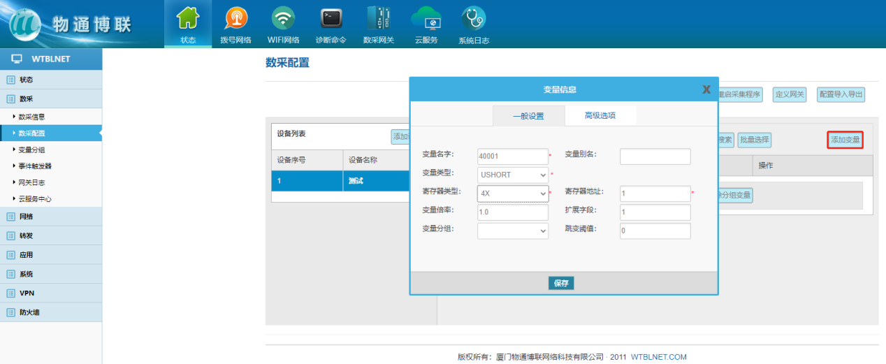 ② 在新增的設備下添加變量,填寫變量的偏移地址