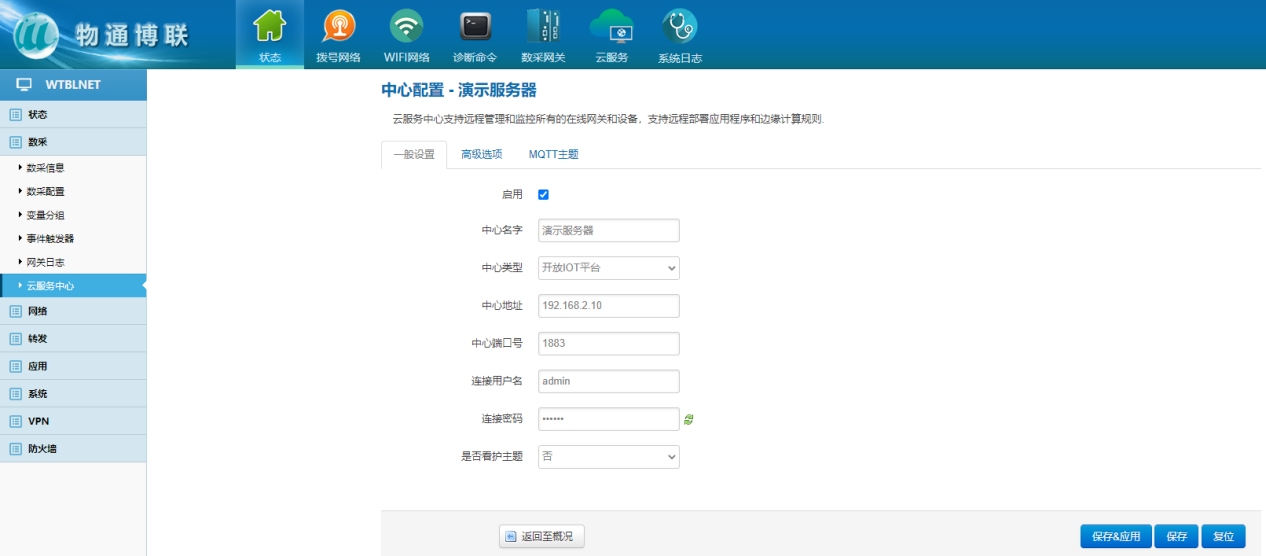 (4)配置網(wǎng)關與服務器的云端接入?yún)?shù)
