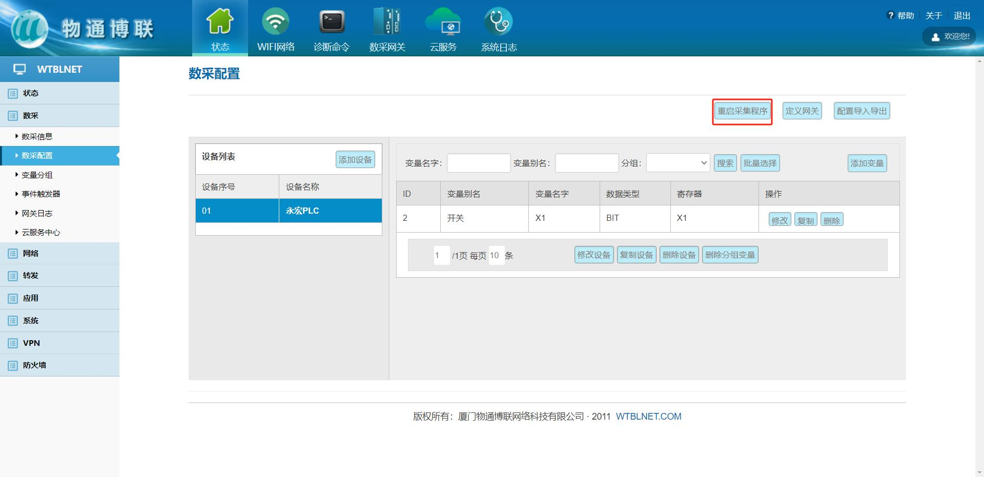 新增/修改配置后,需要點擊重啟采集程序,使新的配置生效。