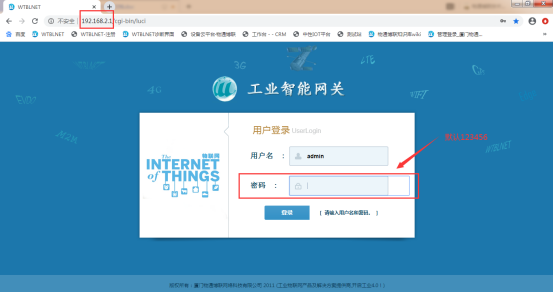 打開瀏覽器輸入網(wǎng)關(guān)地址192.168.2.1,登錄密碼默認(rèn)為123456(如有修改請按實際填寫)