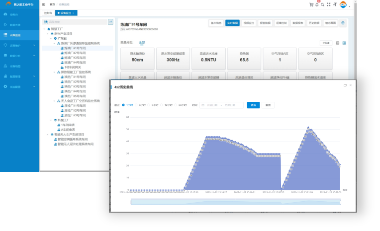 支持秒級頻率精準獲取關鍵運行參數,對設備實時數據、歷史數據、報警數據、視頻監控、工況數據等全面監控,對設備運行數據了如指掌。同時支持支持設備單向和多項遠程控制,隨時隨地掌控設備運行。