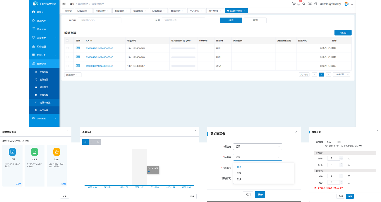 統一管理三大運營商物聯卡,實時監控流量使用情況,支持充值續費與預警通知,確保設備永遠在線。