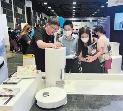 參觀者在新加坡消費電子展上了解追覓科技產品。 夏博悅攝