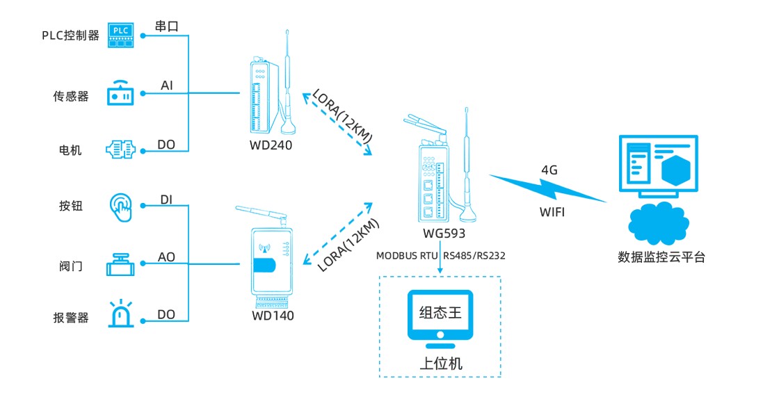 對此,物通博聯(WideIOT)提供低成本、高性能的LoRa物聯網解決方案,具備以其低功耗、廣覆蓋、高可靠性等特性,助力光伏電站實現“降本、增效、智能化”目標。應用場景如下: