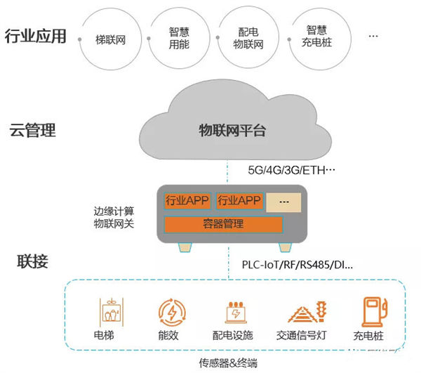通過物聯網平臺,應用云計算技術,實現邊緣物聯設備(如網絡、設備、容器及應用)的統一云化管理,同時北向支持與其他行業應用系統靈活對接。